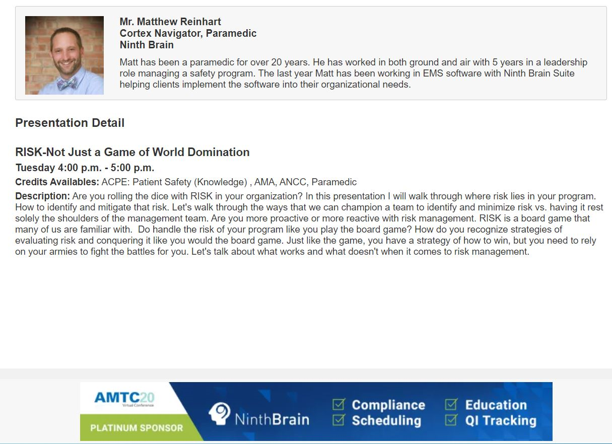 Big Congratulations to our employee, Matt Reinhart, for being chosen to speak at the conference about Risk! His session is tomorrow at 4pm ET.