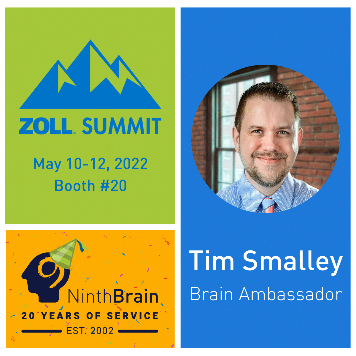 Ninth Brain’s Brain Ambassador, Tim Smalley, will be at the 2022 ZOLL Summit May 10-12, 2022. If you are attending, be sure to stop by to say hi. #ZOLLSummit2022